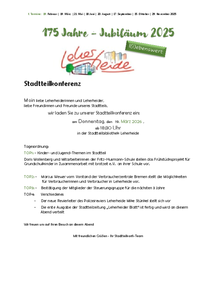 Einladung zur Stadtteilkonferenz Leherheide