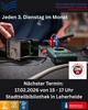 Jeden 3. Dienstag im Monat in der Stadtteilbbliothek Leherheide. Nächster Termin am 17.02.2026 von 17 - 19 Uhr.
